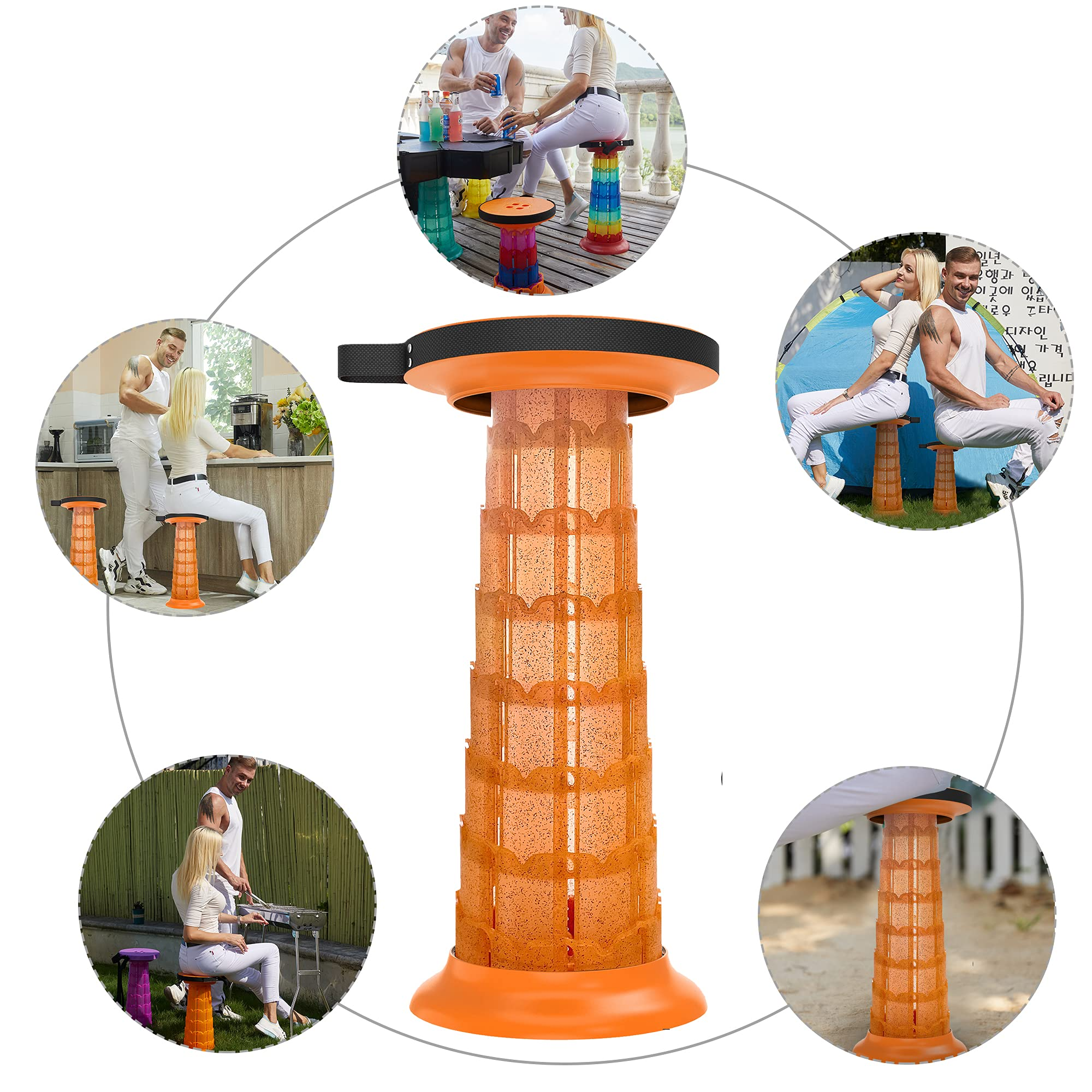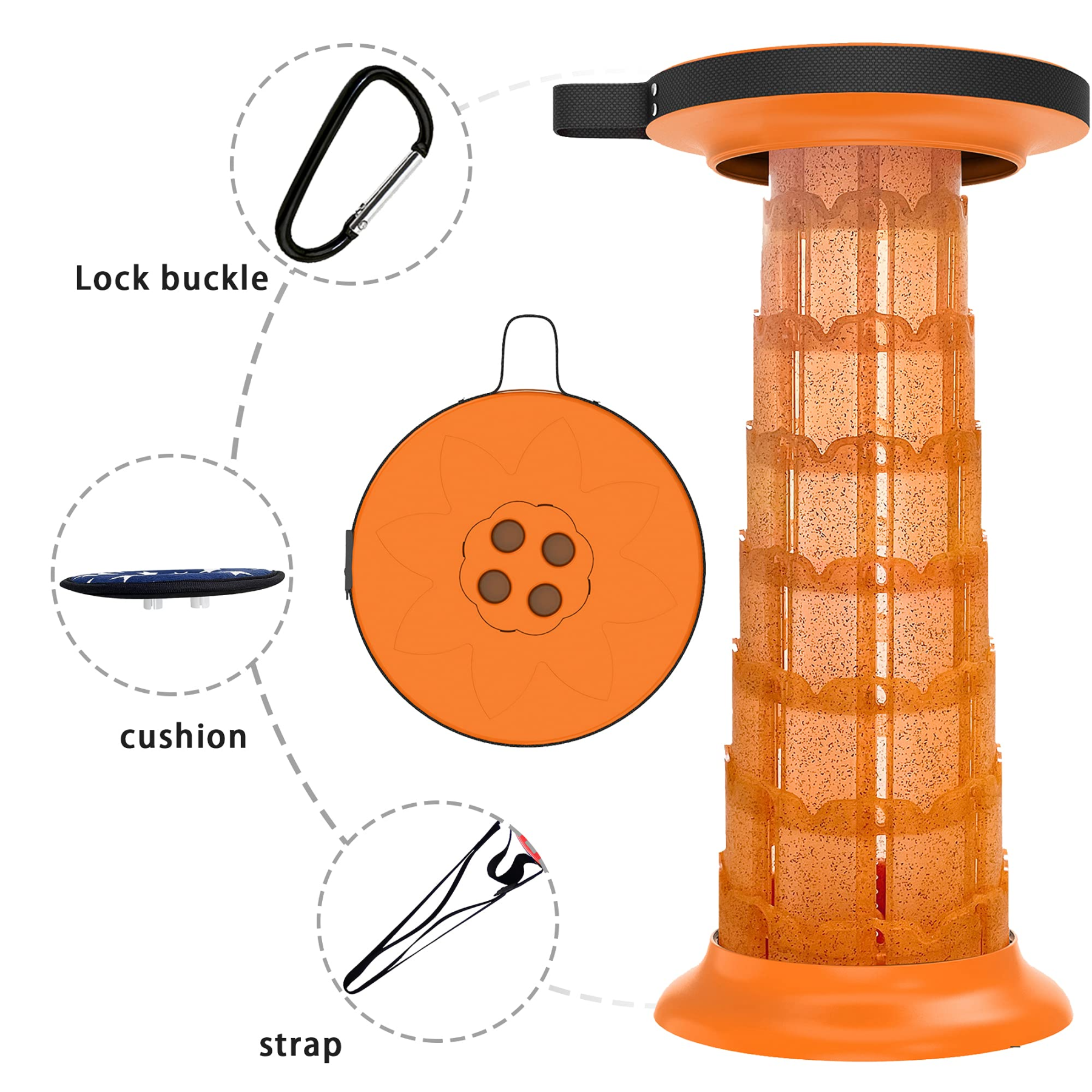 CREDIBILITATE COMPANIE Tragbarer klapphocker mit Kissen,Campinghocker faltbar,hocker,werkstatthocker,teleskophocker Faltbarer für Erwachsene, Tragfähigkeit 550lb mit Tasche Karabiner (Schwarz)